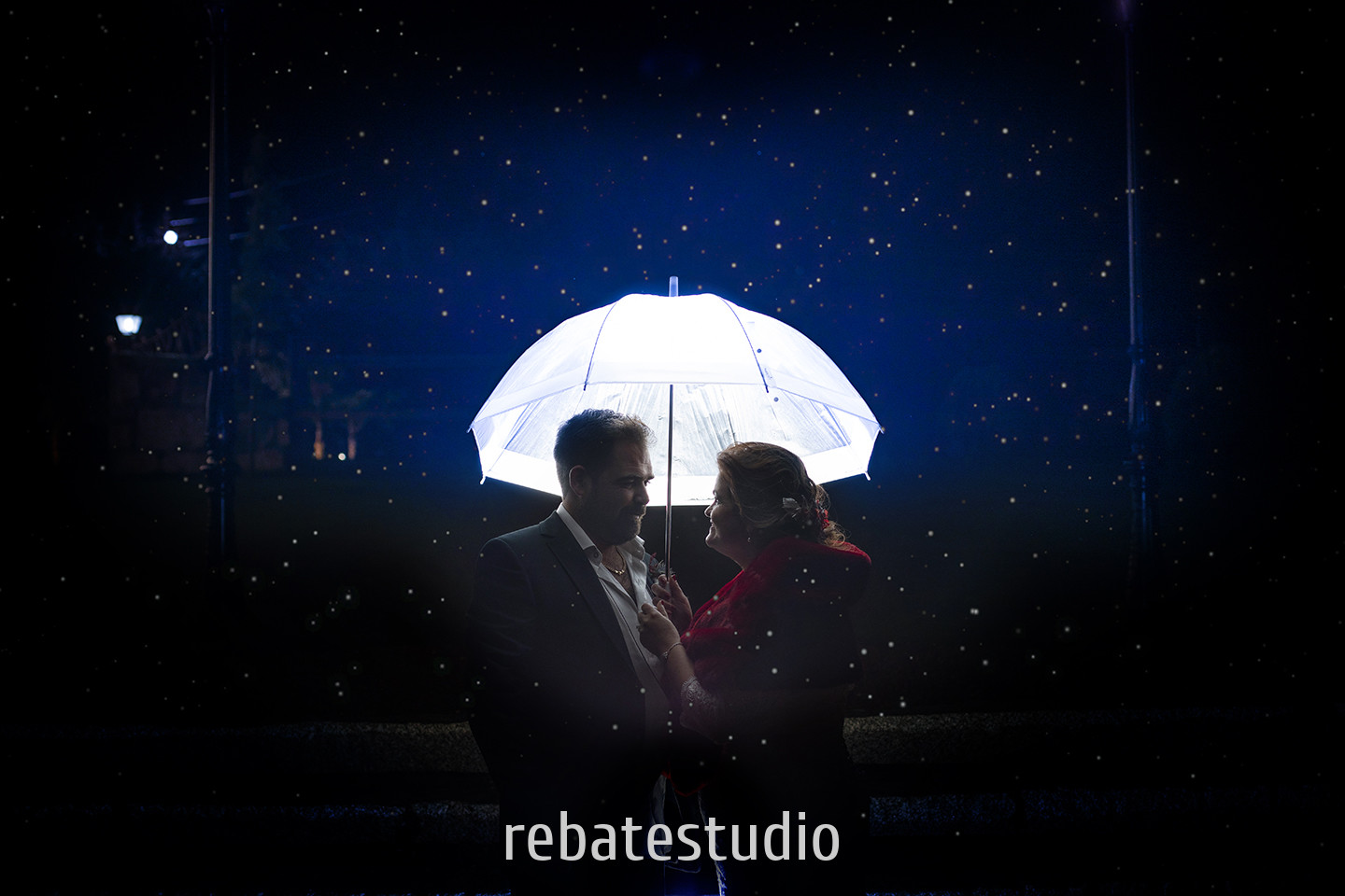 Como nos gusta a nosotros queremos estar con ellos incluso después de baile , nunca sabes donde puede estar la mejor fotografía y como me dijo Estrella " No todas las novias tienes fotos lloviendo " pues dicho y echo , aprovechando que resguardados llovía fuara se me ocurrio sacarlos fuera y de noche aprovechando el monto para hacer una foto de Cuento .